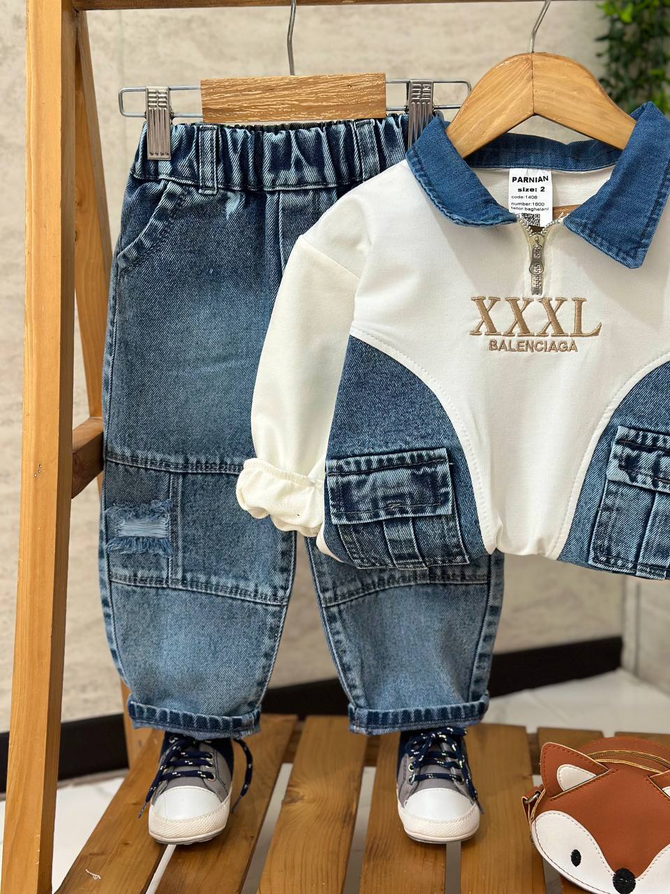 نیم زیپ باشه ترکیب جینم باشه😍 خاص ترین استایل امسالو کوچولوی تو باید داشته باشه♥️ کیفیتش عالیهههه شلوارش گرم بالا درجه یک👌🏻