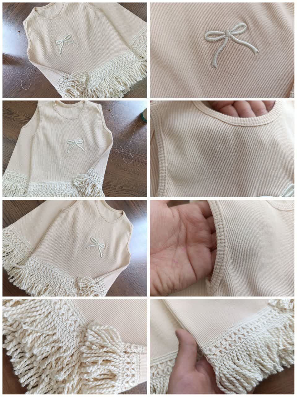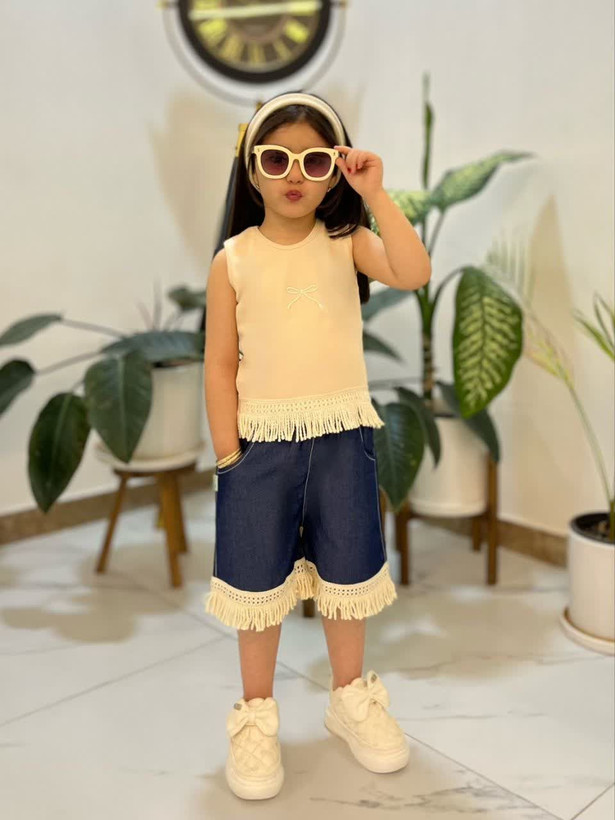 ✅روی سینه تاب گلدوزی داره، پایین تاب و شلوارک ریشه با کیفیت داره. کمر شلوارک کش داره.